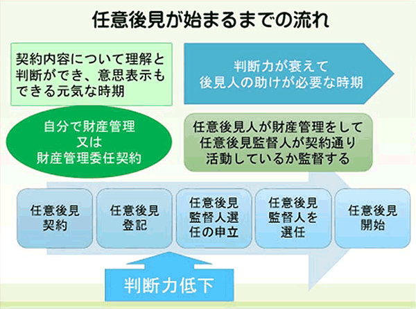 ご本人の判断力が十分にあるのであれば、任意後見契約を締結し、将来判断力が衰えた時に任意後見人が活動を開始できる準備をします。